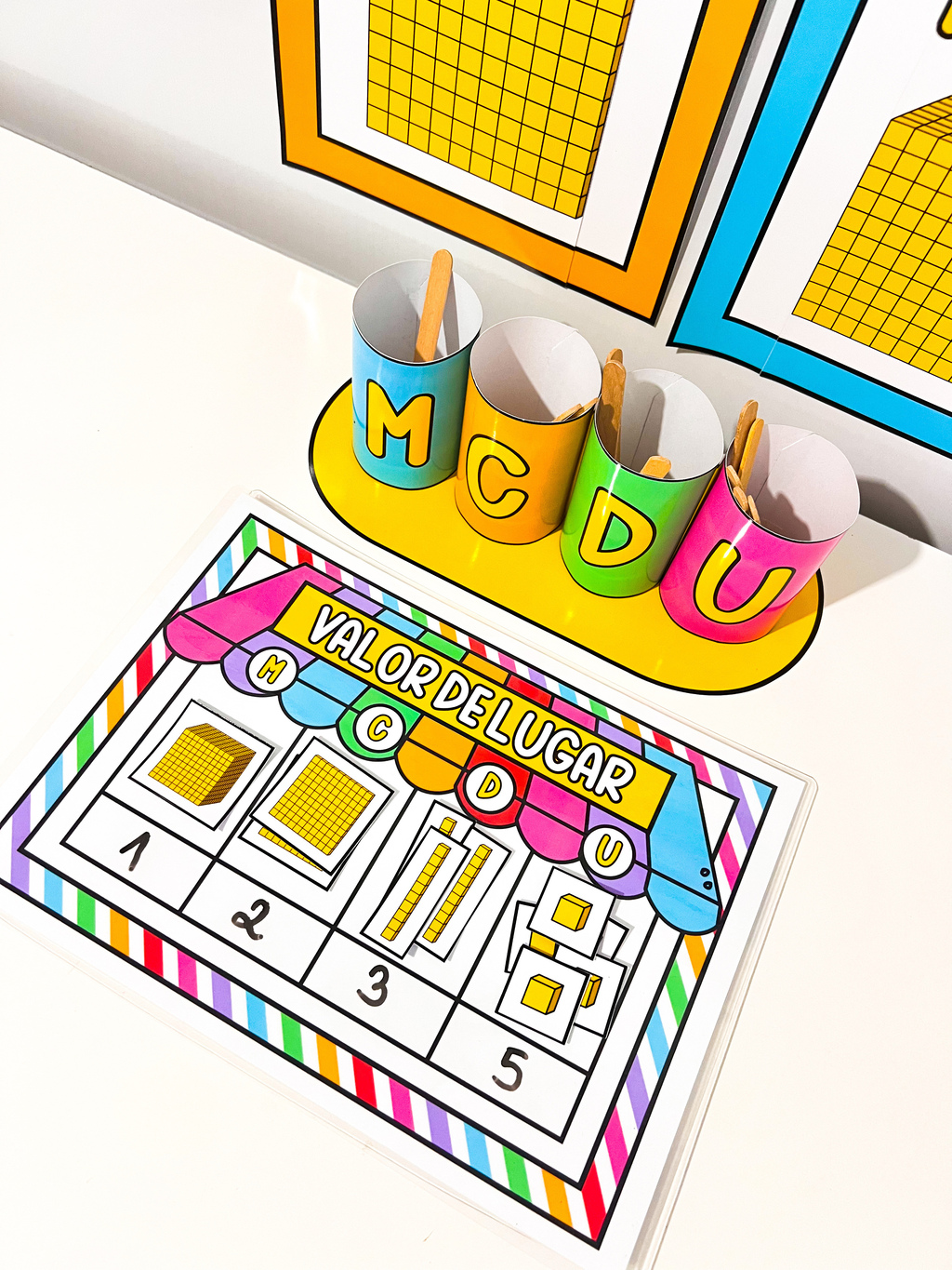 Esse material pedagógico colorido e interativo é ideal para trabalhar o sistema de numeração decimal com os alunos dos anos iniciais. O Kit Recursos de Material Dourado contém painéis ilustrativos com os blocos de unidade, dezena, centena e milhar, todos organizados com um recurso visual que chama a atenção das crianças e facilita a compreensão do valor posicional dos números.
